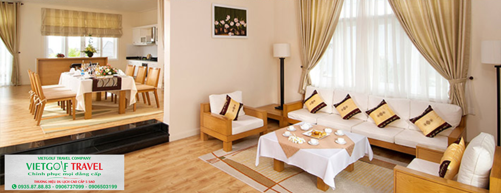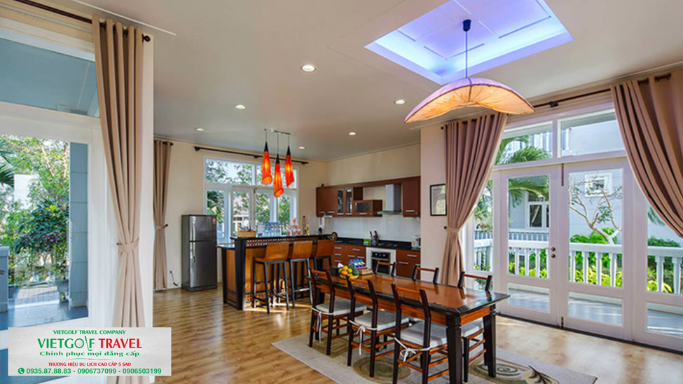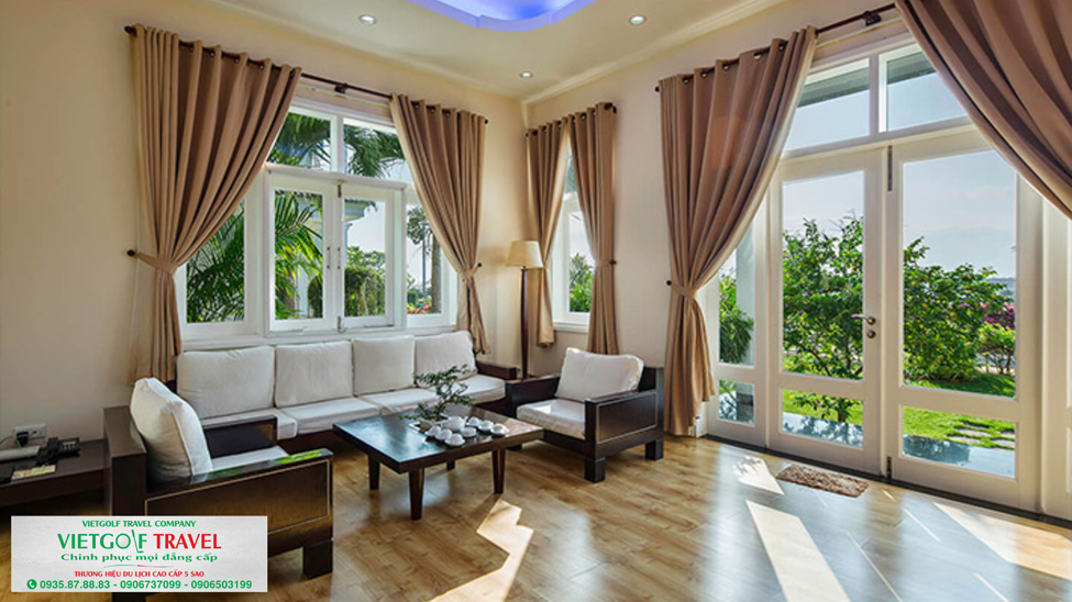 - Mỗi Villa có diện tích 400 m2 với 02 phòng khách và 3 phòng ngủ với đầy đủ nội thất và các thiết bị tiện nghi hiện đại và sang trọng.