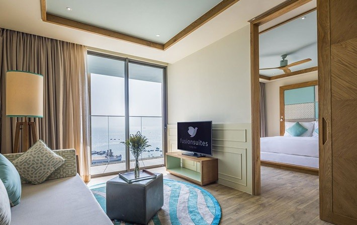 - Fusion Suites đạt chuẩn 5 sao, được thiết kế với kiến trúc độc đáo, cao 20 tầng với 171 phòng nghỉ bao gồm khu khách sạn, căn hộ với tầm nhìn hướng ra biển xanh tuyệt đẹp.