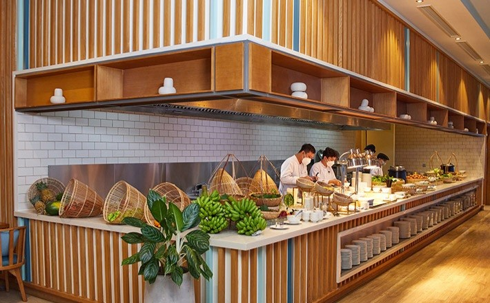 - Nhà hàng Fresh tại tầng 19 với không gian ăn uống ở tầng cao bao quát toàn cảnh thành phố biển thơ mộng, đem lại cho thực khách sự thoải mái để tận hưởng thú vui ẩm thực vào bất kể thời gian nào trong ngày. Thực đơn nhà hàng rất đa dạng, bao gồm các món ăn truyền thống Việt Nam và quốc tế, đặc trưng nhất là hải sản tươi sống được đánh bắt trong ngày ngay tại địa phương.